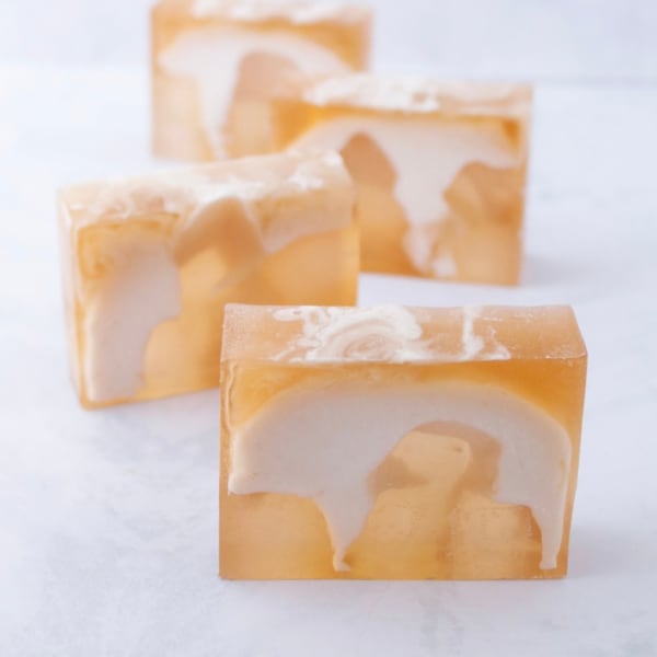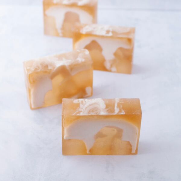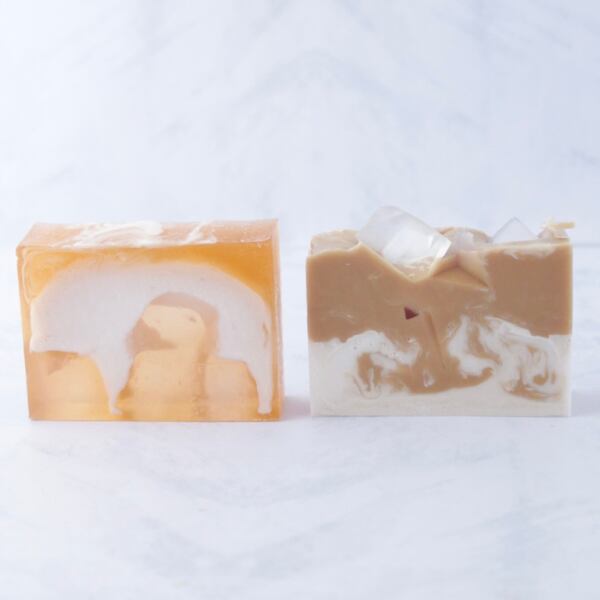 紅茶色の石けんに、ほんのり溶け込むようなミルク色を合わせて、