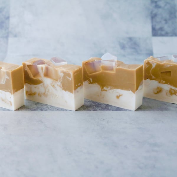 ミルク色の石けんに、ミルクコーヒー色を重ねて、